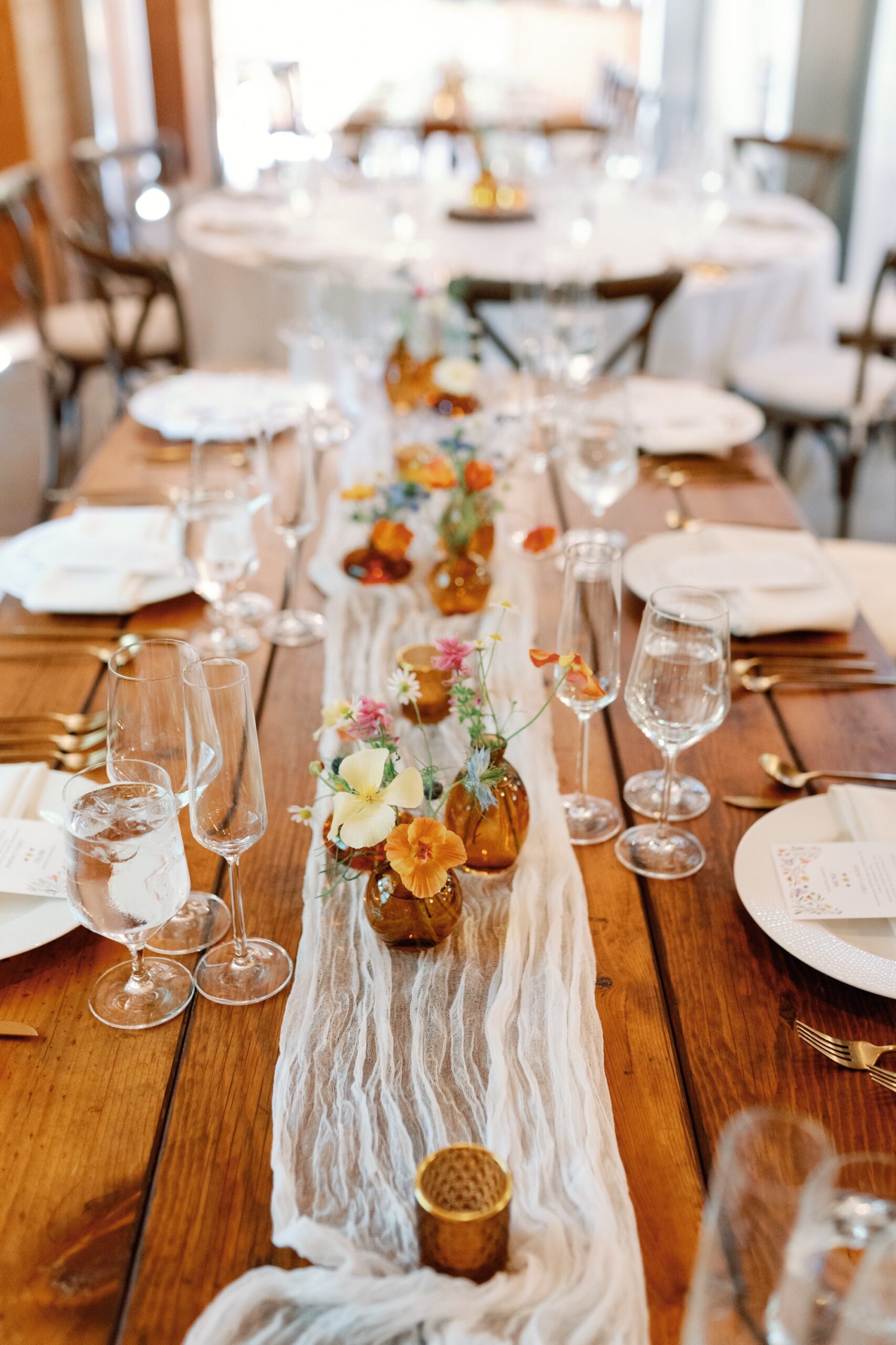 While wildflowers take center stage, don’t forget to add extra greenery to your decor. Eucalyptus, ferns, and ivy can fill out bouquets, drape over tables, and frame your ceremony space. Greenery adds texture, depth, and a lush feel that enhances the wild, natural vibe of your wedding.